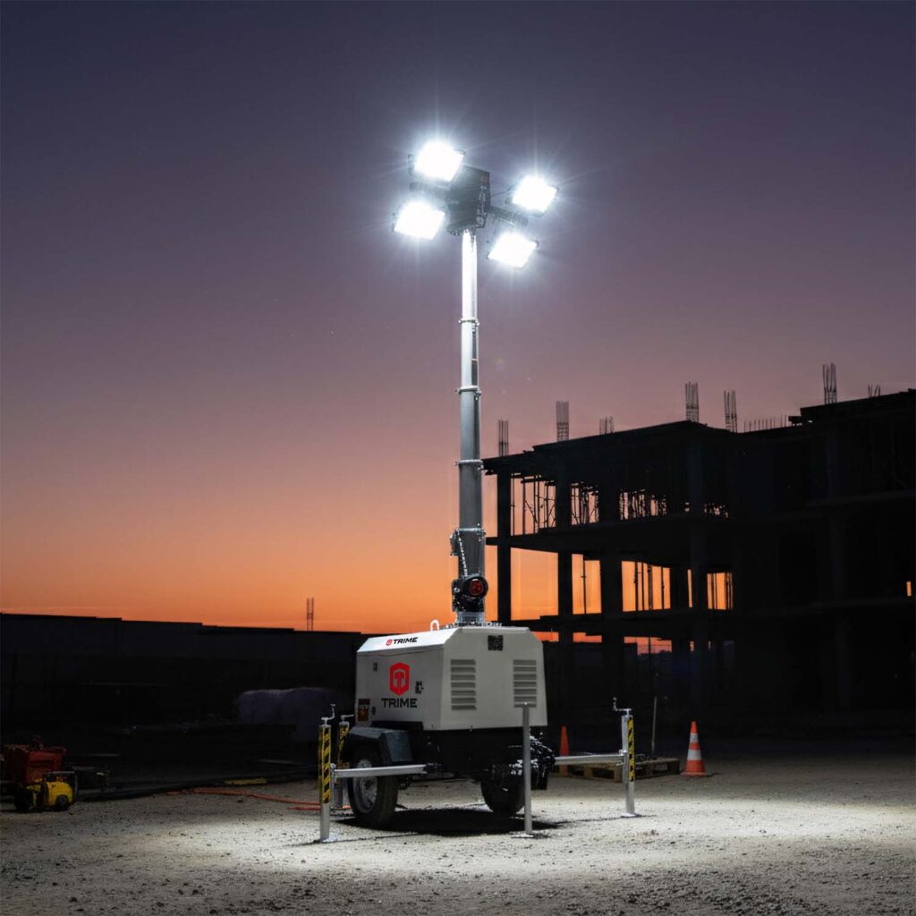 Der TRIME X-RENT ist ein dieselbetriebener mobiler Lichtmast. Der X-RENT ist mit sechs energieeffizienten 320W LED-Scheinwerfer ausgestattet, die eine beleuchtete Fläche von bis zu 14.000 qm 2 liefern.